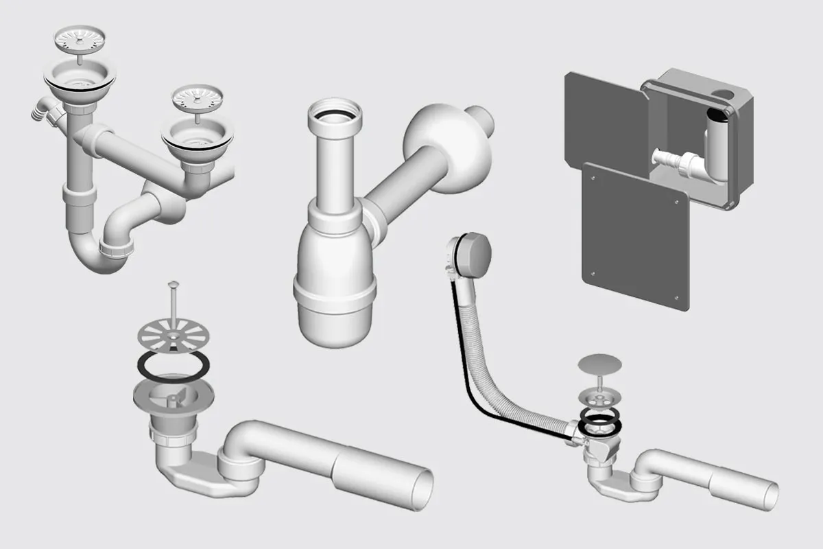 - Sifoni za sudopere – dostupni za jednostruke ili dvostruke sudopere, većina modela ima priključak za perilicu posuđa.