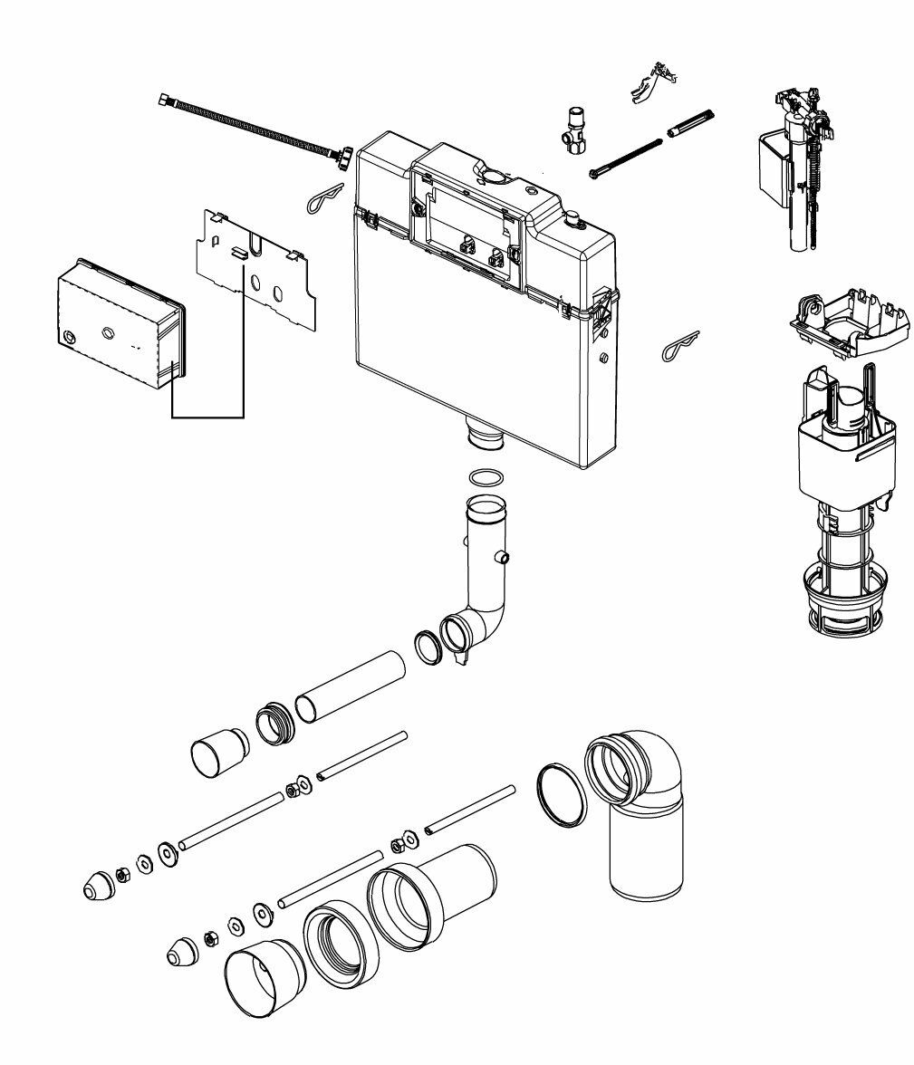 Na skici možete pronaći najčešće tražene rezervne dijelove donjeg ugradbenog vodokotlića. Ako dio koji tražite nije dostupan, kontaktirajte nas i pokušat ćemo vam pomoći.