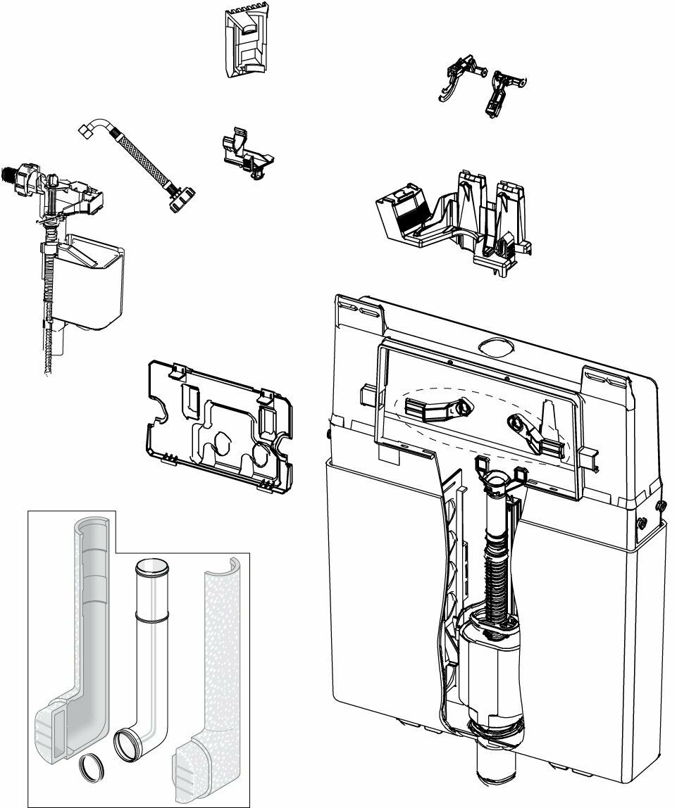 Na skici možete pronaći najčešće tražene rezervne dijelove donjeg ugradbenog vodokotlića. Ako dio koji tražite nije dostupan, kontaktirajte nas i pokušat ćemo vam pomoći.