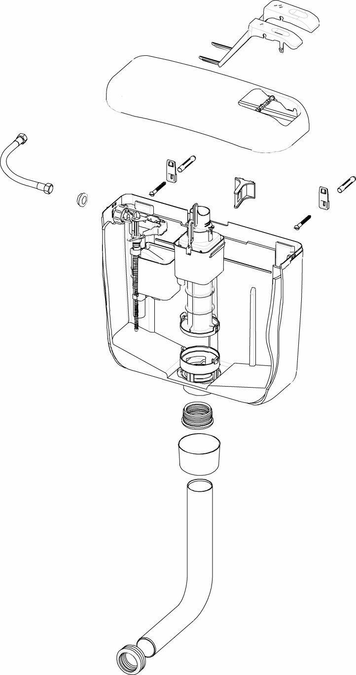 Na skici možete pronaći najčešće tražene rezervne dijelove donjeg vidljivog WC vodokotlića. Ako dio koji tražite nije dostupan, kontaktirajte nas i pokušat ćemo vam pomoći.